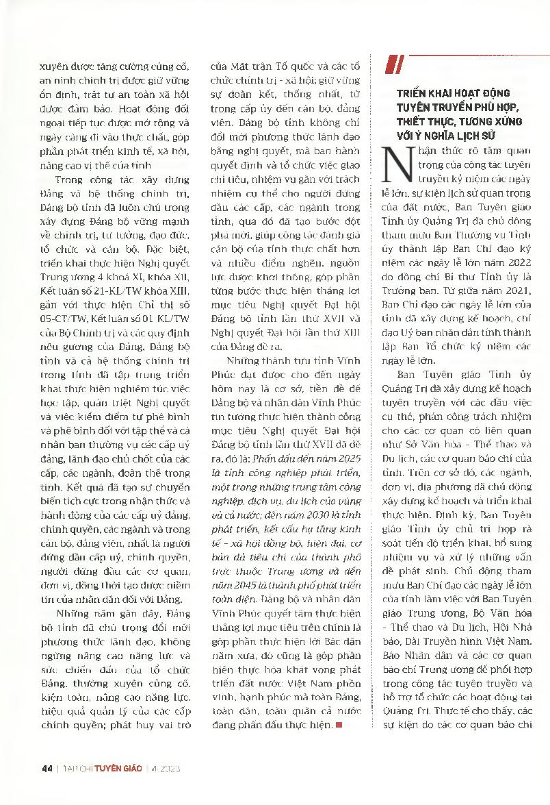 Quảng Trị: Tích cực công tác tham mưu chỉ đạo, tổ chức các hoạt động tuyên truyền kỷ niệm các ngày lễ lớn, sự kiện lịch sử