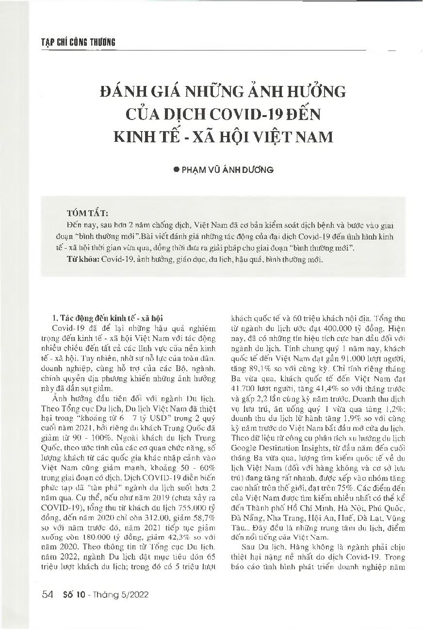 Đánh giá ảnh hưởng của dịch Covid-19 đến Việt Nam = Assessing the impacts of the COVID-19 pandemic on Vietnam