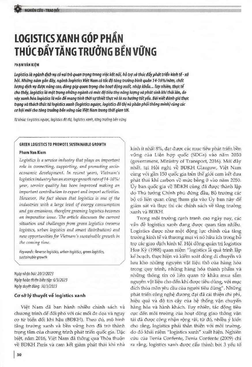 Logistics xanh góp phần thúc đẩy tăng trưởng bền vững = Green logistics to promote sustainable growth