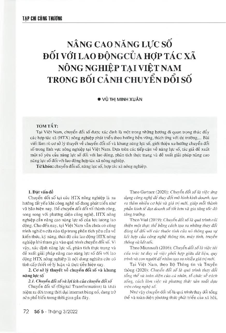 Nâng cao năng lực số đối với lao động của hợp tác xã nông nghiệp tại Việt Nam trong bối cảnh chuyển đổi số = Enhancing the digital capacity of workers working for agricultural cooperatives in Vietnam in the context of digital transformation