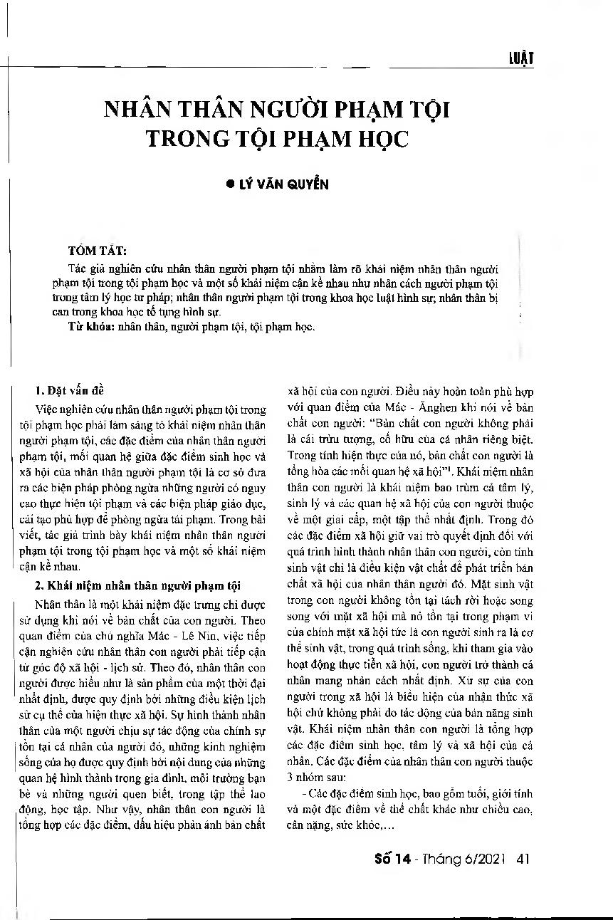 Nhân thân người phạm tội trong tội phạm học = The identity of offenders in criminology