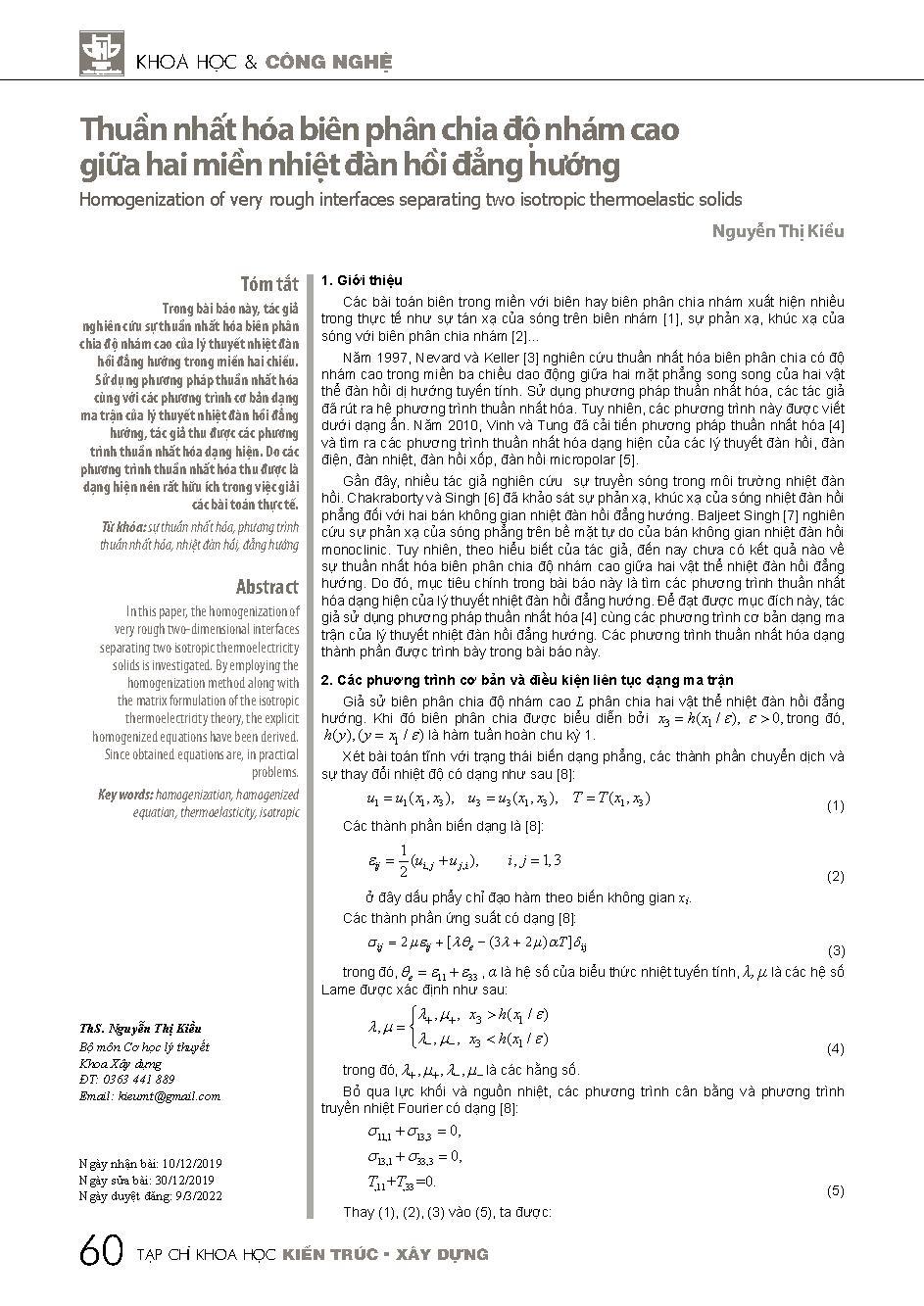 Thuần nhất hóa biên phân chia độ nhám cao giữa hai miền nhiệt đàn hồi đẳng hướng = Homogenization of very rough interfaces separating two isotropic thermoelastic solids