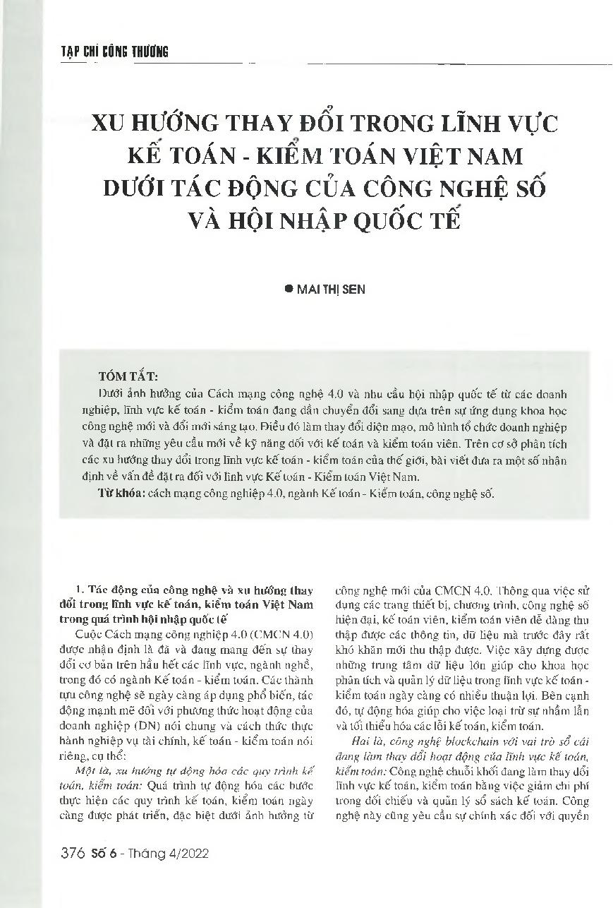 Xu hướng thay đổi trong lĩnh vực kế toán - kiểm toán Việt Nam dưới tác động của công nghệ số và hội nhập quốc tế = Development trends in the global accounting - auditing field in Vietnam in the context of the digital technology development and the interna