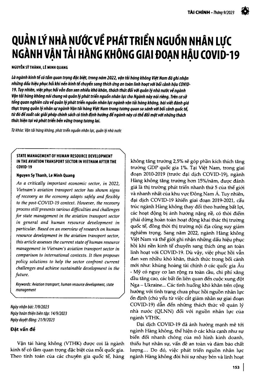 Quản lý nhà nước về phát triển nguồn nhân lực ngành Vận tải hàng không giai đoạn hậu COVID-19