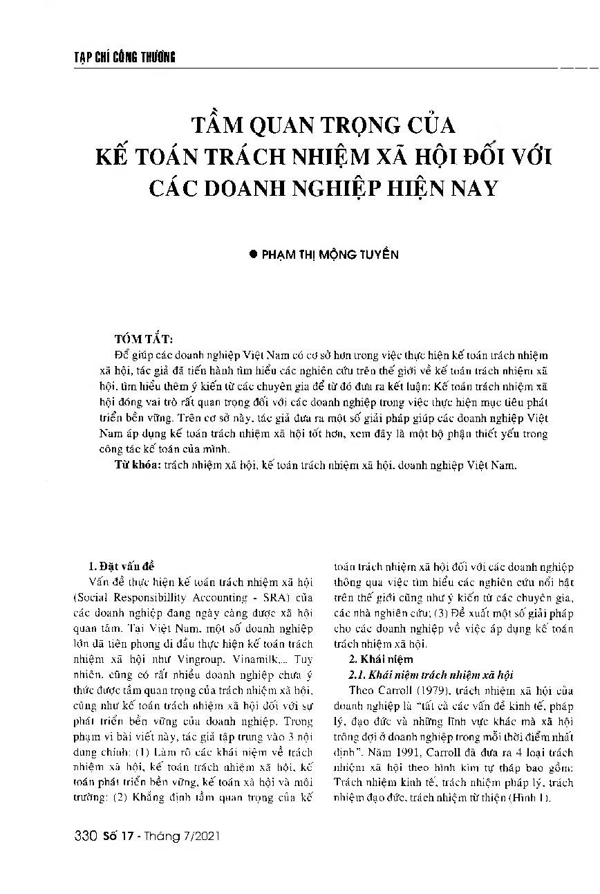 Tầm quan trọng của kế toán trách nhiệm xã hội đối với các doanh nghiệp hiện nay = The importance of social responsibility for Vietnamese enterprises