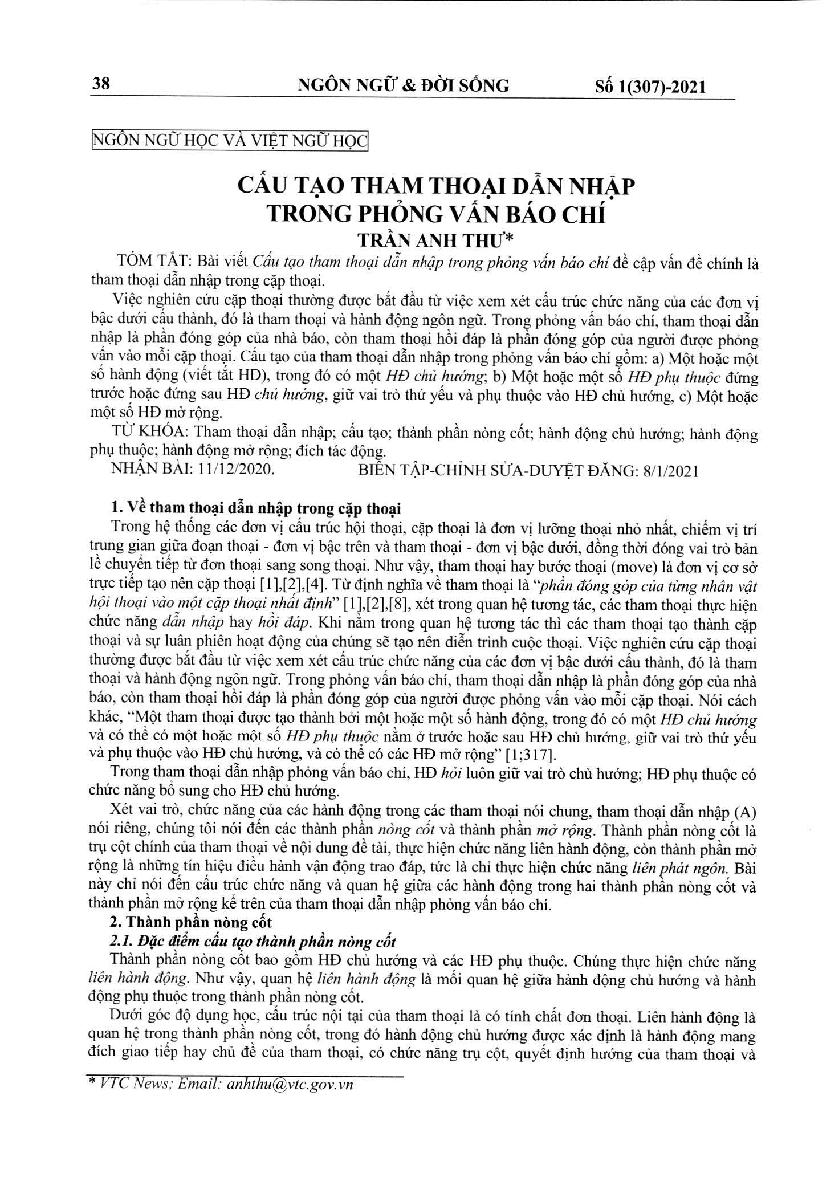 Cấu tạo tham thoại dẫn nhập trong phỏng vấn báo chí