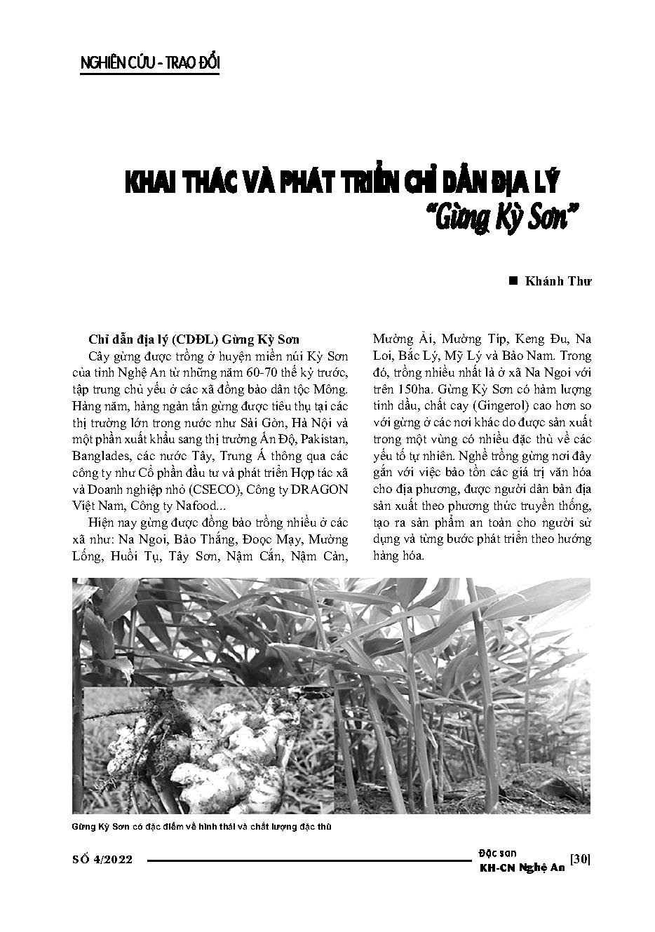 Khai thác và phát triển chỉ dẫn địa lý “Gừng Kỳ Sơn”