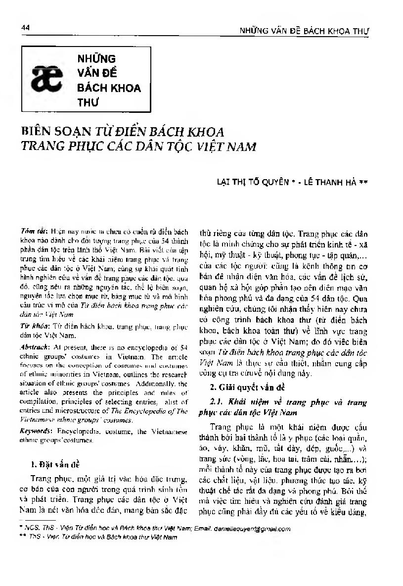 Biên soạn Từ điển bách khoa trang phục các dân tộc Việt Nam = Compiling "Encyclopedia of Ethnic groups'costumes in Vietnam"