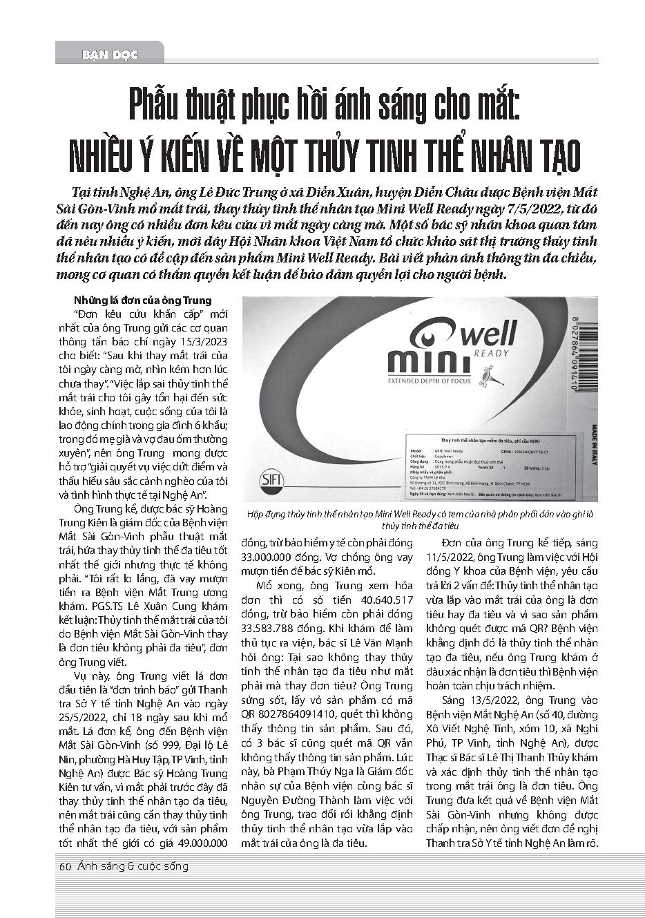 Phẫu thuật phục hồi ánh sáng cho mắt: nhiều ý kiến về một thủy tinh thể nhân tạo