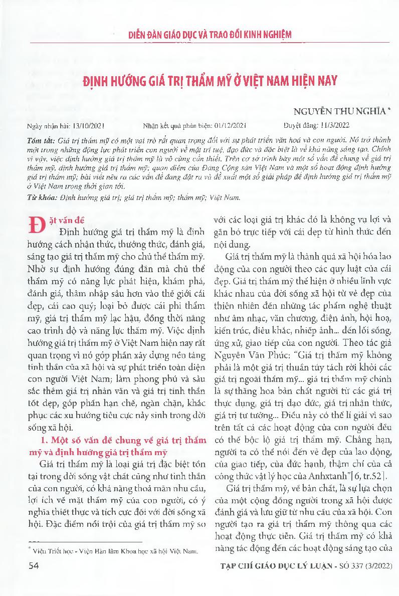 Định hướng giá trị thẩm mỹ ở Việt Nam hiện nay