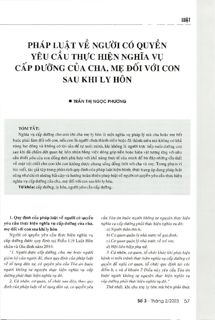 Phương Pháp luật về người có quyền yêu cầu thực hiện nghĩa vụ cấp dưỡng của cha, mẹ đối với con sau khi ly hôn = Provisions for the person who have right to request for the child support increment after divorce