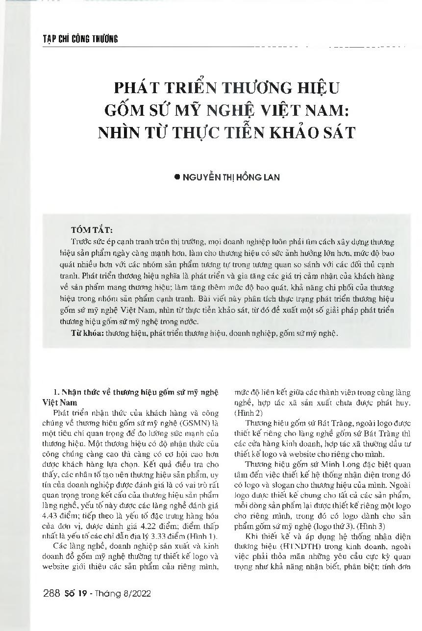 Phát triển thương hiệu gốm sứ mỹ nghệ Việt Nam: Nhìn từ thực tiễn khảo sát = A survey to assess the brand development for fine art ceramics in Vietnam