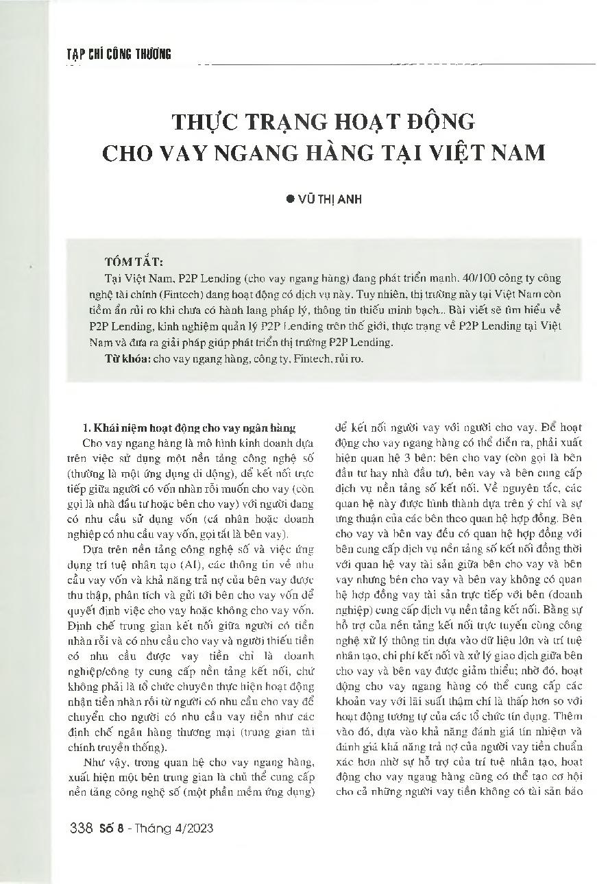 Thực trạng hoạt động cho vay ngang hàng tại Việt Nam