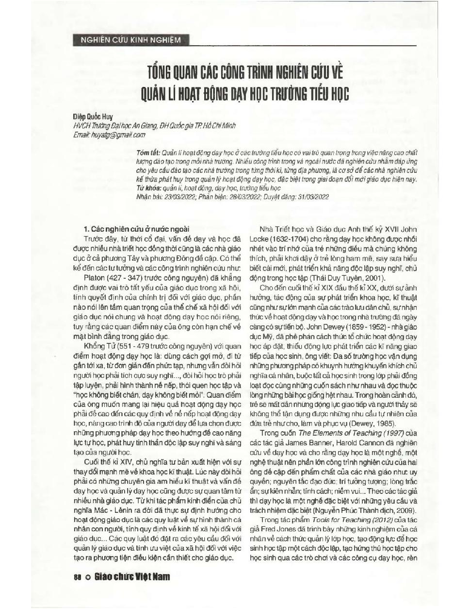 Tổng quan các công trình nghiên cứu về quản lý hoạt động dạy học trường tiểu học = Overview of research works on teaching activity management in primary schools