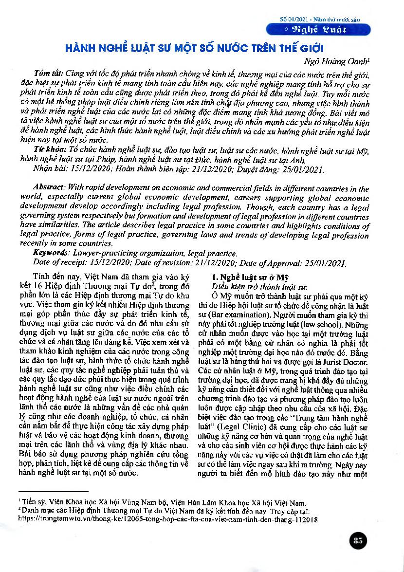 Hành nghề luật sư một số nước trên thế giới = Legal practice in some countries