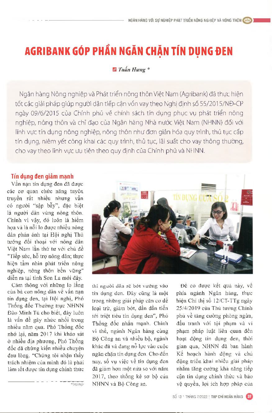 Agribank góp phần ngăn chặn tín dụng đen = Agribank contributes to prevent the black credit