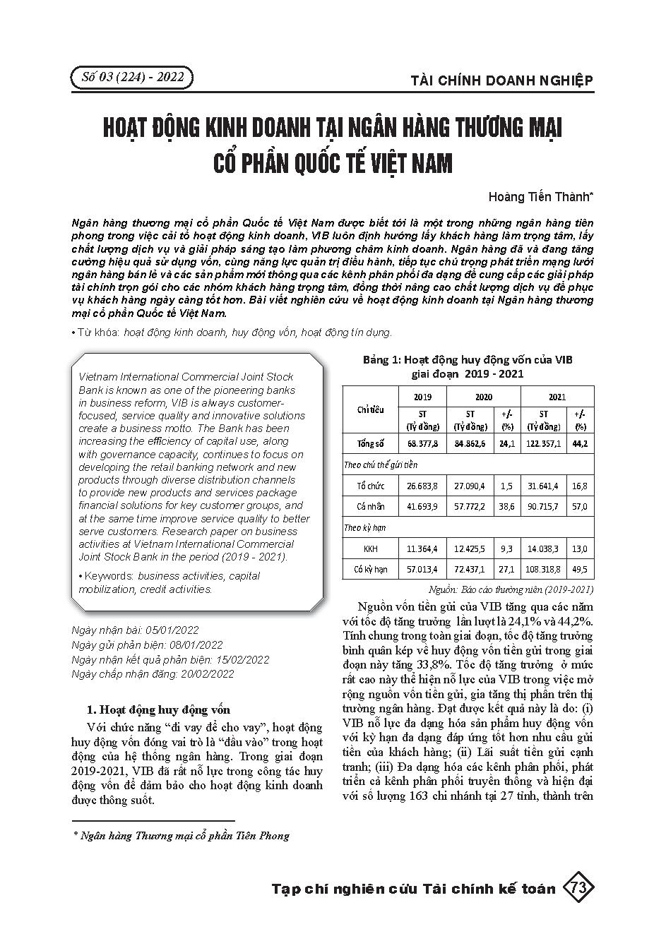 Hoạt động kinh doanh tại ngân hàng thương mại cổ phần quốc tế Việt Nam = Business activities at Vietnam International CommercialJoint Stock Bank