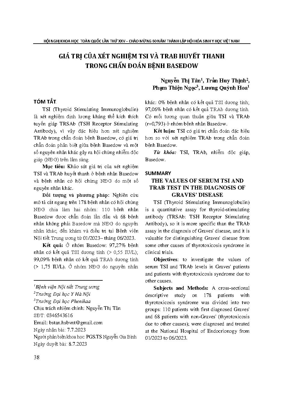 Giá trị của xét nghiệm TSI và TRAb huyết thanh trong chẩn đoán bệnh Basedow