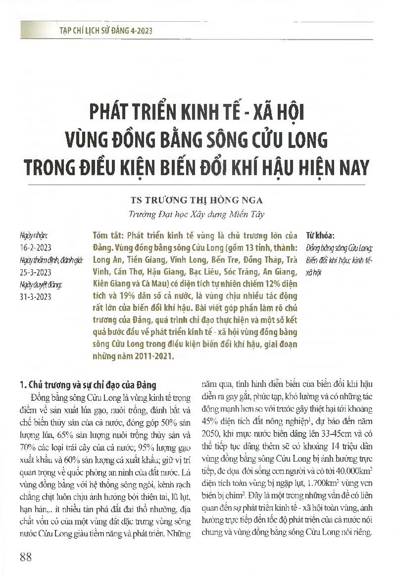 Phát triển kinh tế-xã hội vùng đồng bằng sông Cửu Long trong điều kiện biến đổi khí hậu hiện nay