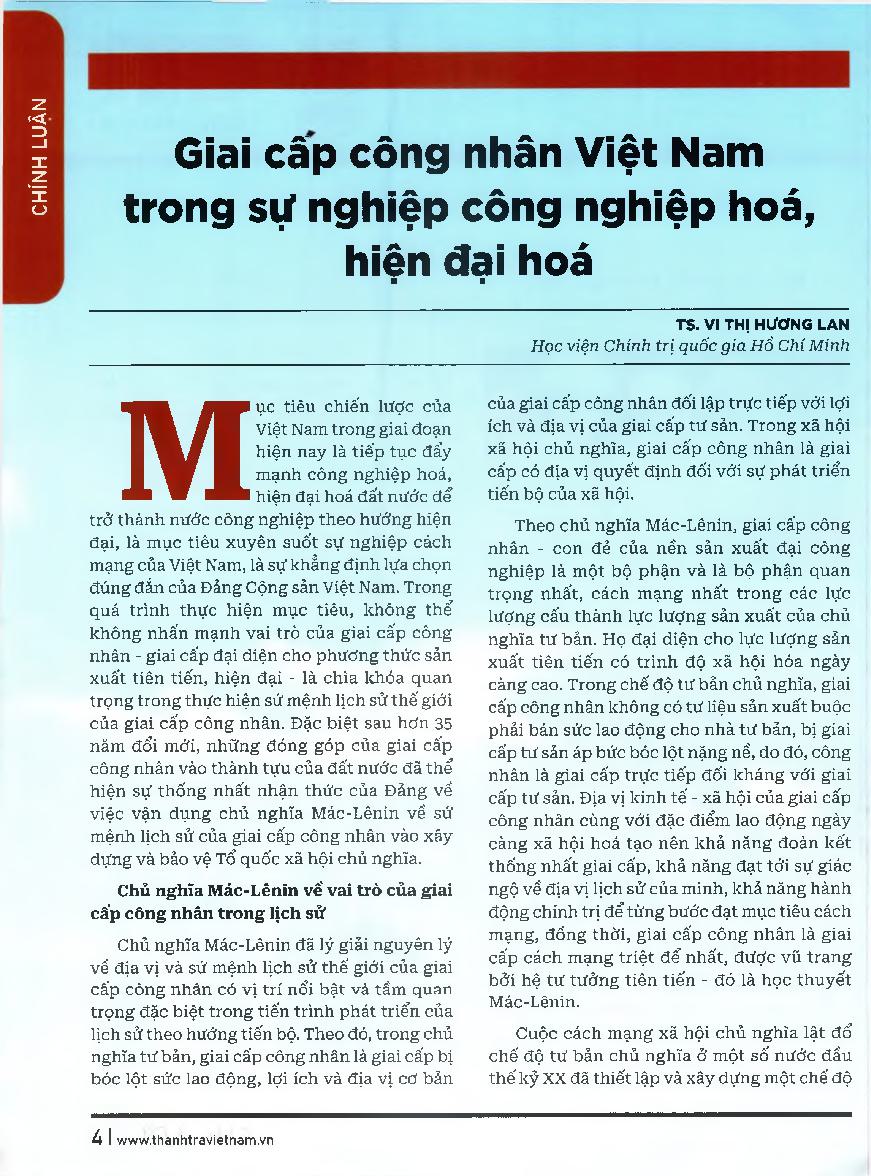 Giai cấp công nhân Việt Nam trong sự nghiệp công nghiệp hoá, hiện đại hoá