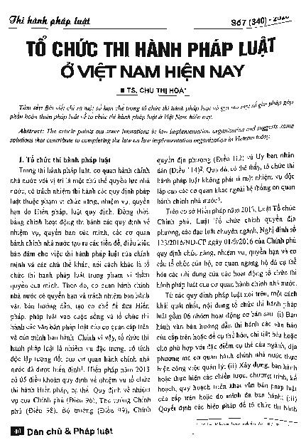 Tổ chức thi hành pháp luật ở Việt Nam hiện nay = Law enforcement organization in Vietnam today