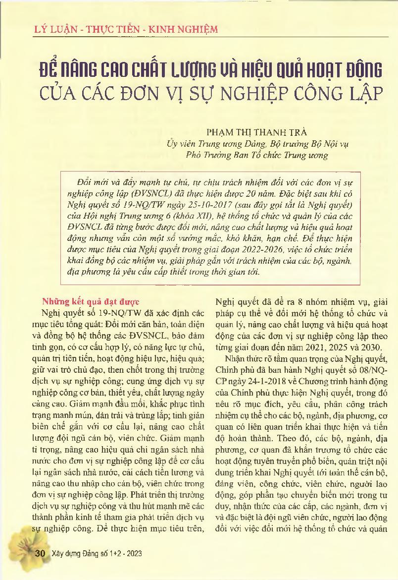 Để nâng cao chất lượng và hiệu quả hoạt động của các đơn vị sự nghiệp công lập