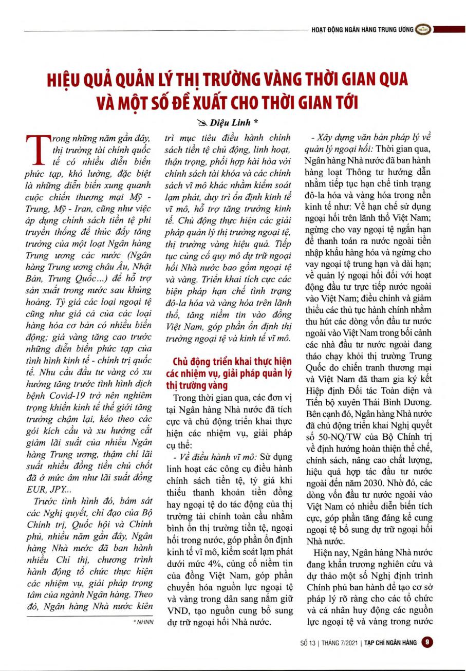 Hiệu quả quản lý thị trường vàng thời gian qua và một số đề xuất cho thời gian tới