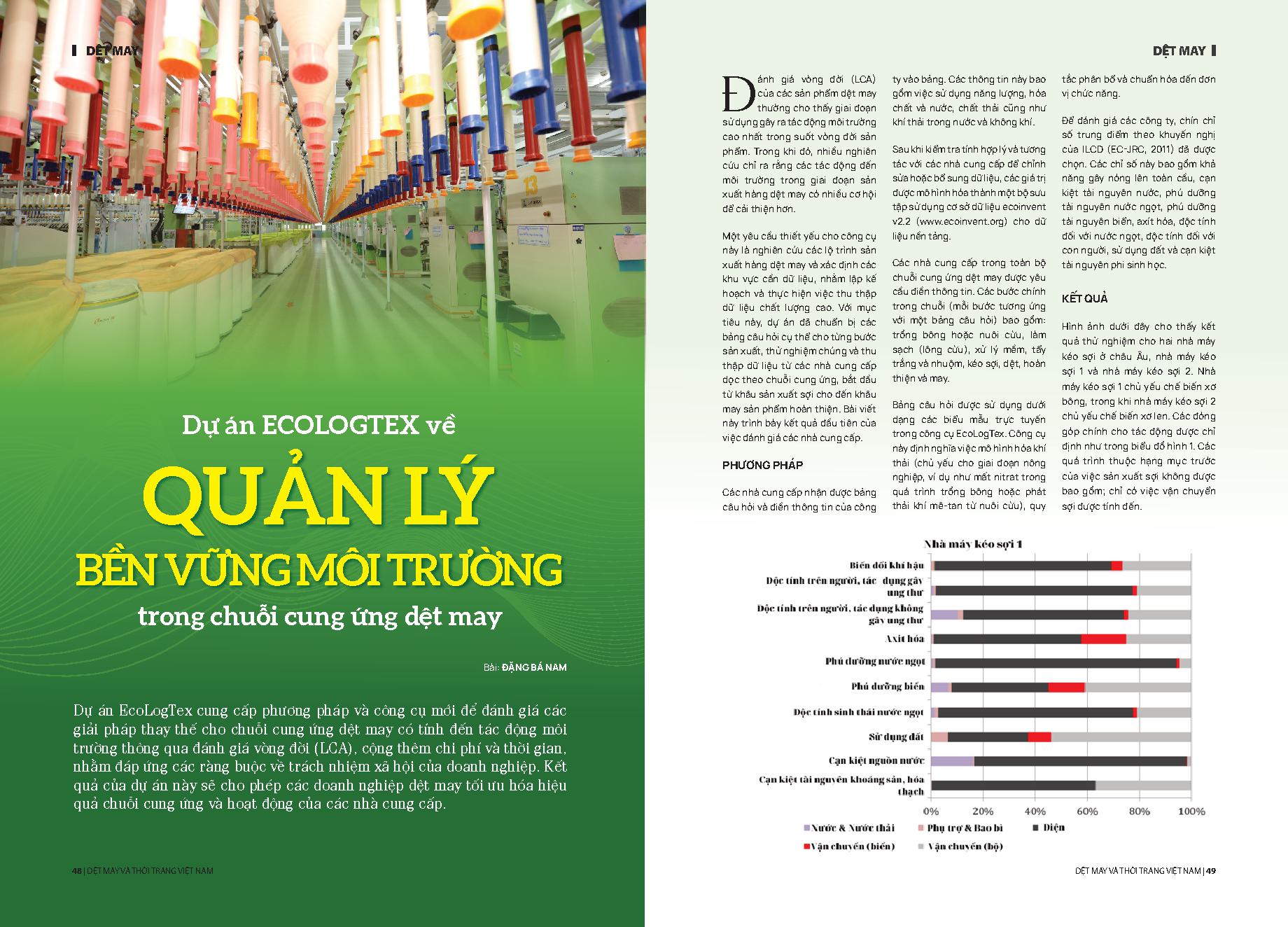 Dự án ECOLOGTEX về quản lý bền vững môi trường trong chuỗi cung ứng dệt may