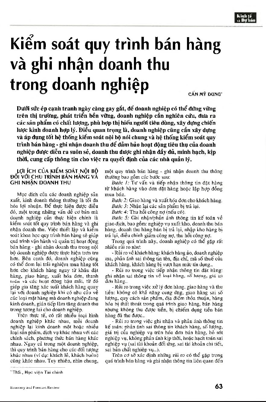 Kiểm soát quy trình bán hàng và ghi nhận doanh thu trong doanh nghiệp