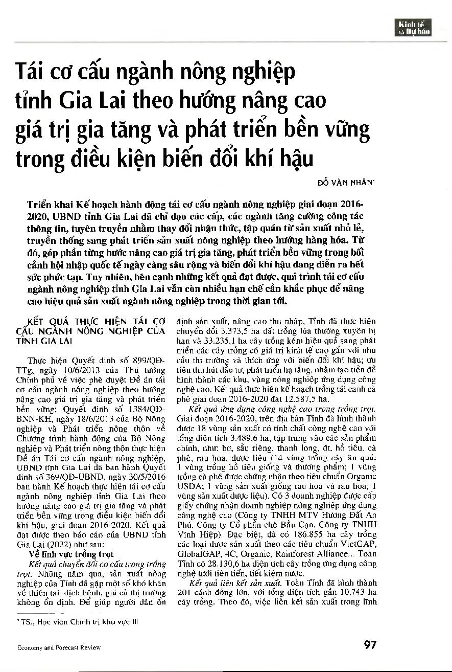Tái cơ cấu ngành nông nghiệp tỉnh Gia Lai theo hướng nâng cao giá trị gia tăng và phát triển bền vững trong điều kiện biến đổi khí hậu