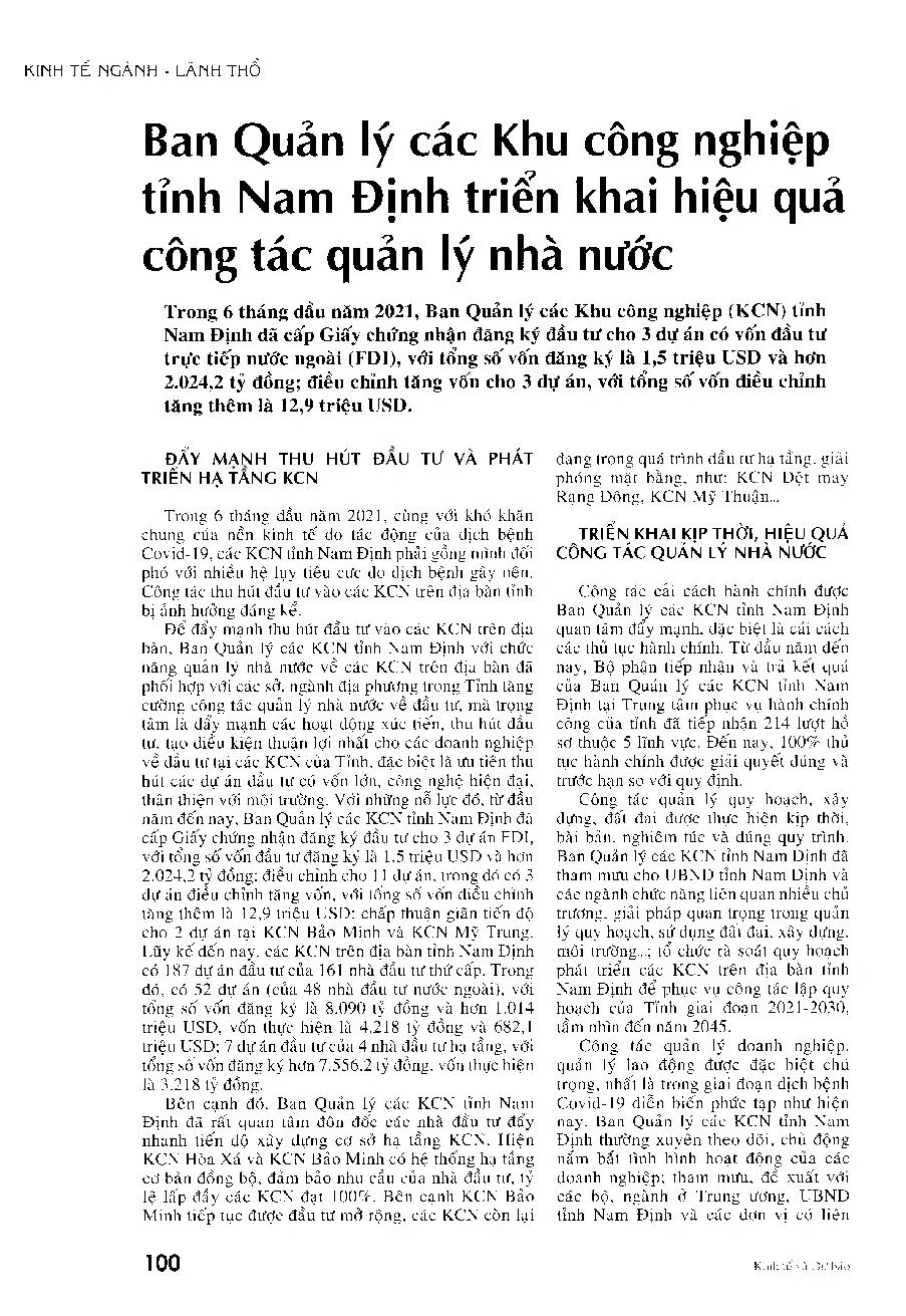 Ban Quản lý các Khu công nghiệp tỉnh Nam Định triển khai hiệu quả công tác quản lý nhà nước