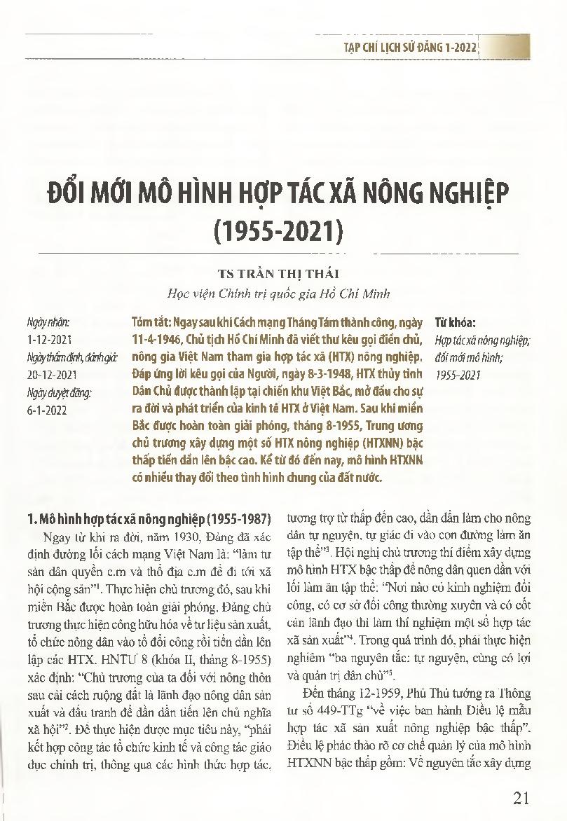 Đổi mới mô hình hợp tác xã nông nghiệp (1955-2021)
