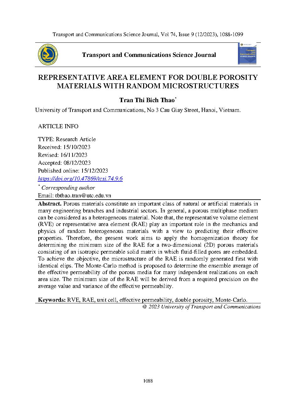 Phần tử diện tích đặc trưng cho vật liệu rỗng kép với vi cấu trúc ngẫu nhiên = Representative area element for double porosity materials with random microstructures