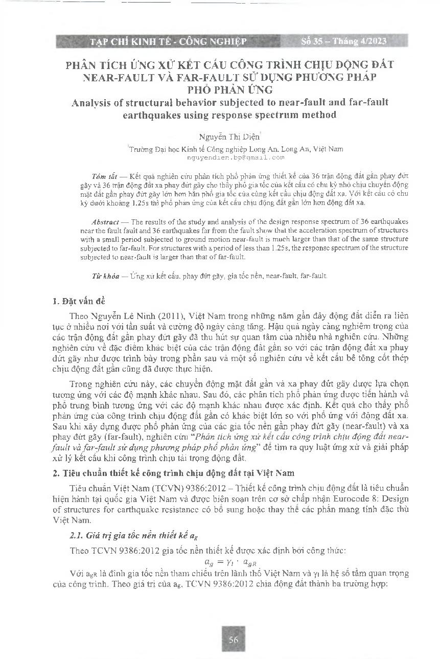 Phân tích ứng xử kết cấu công trình chịu động đất near-fault và far-fault sử dụng phương pháp phổ phản ứng = Analysis of structural behavior subjected to near-fault and far-fault earthquakes using response spectrum method
