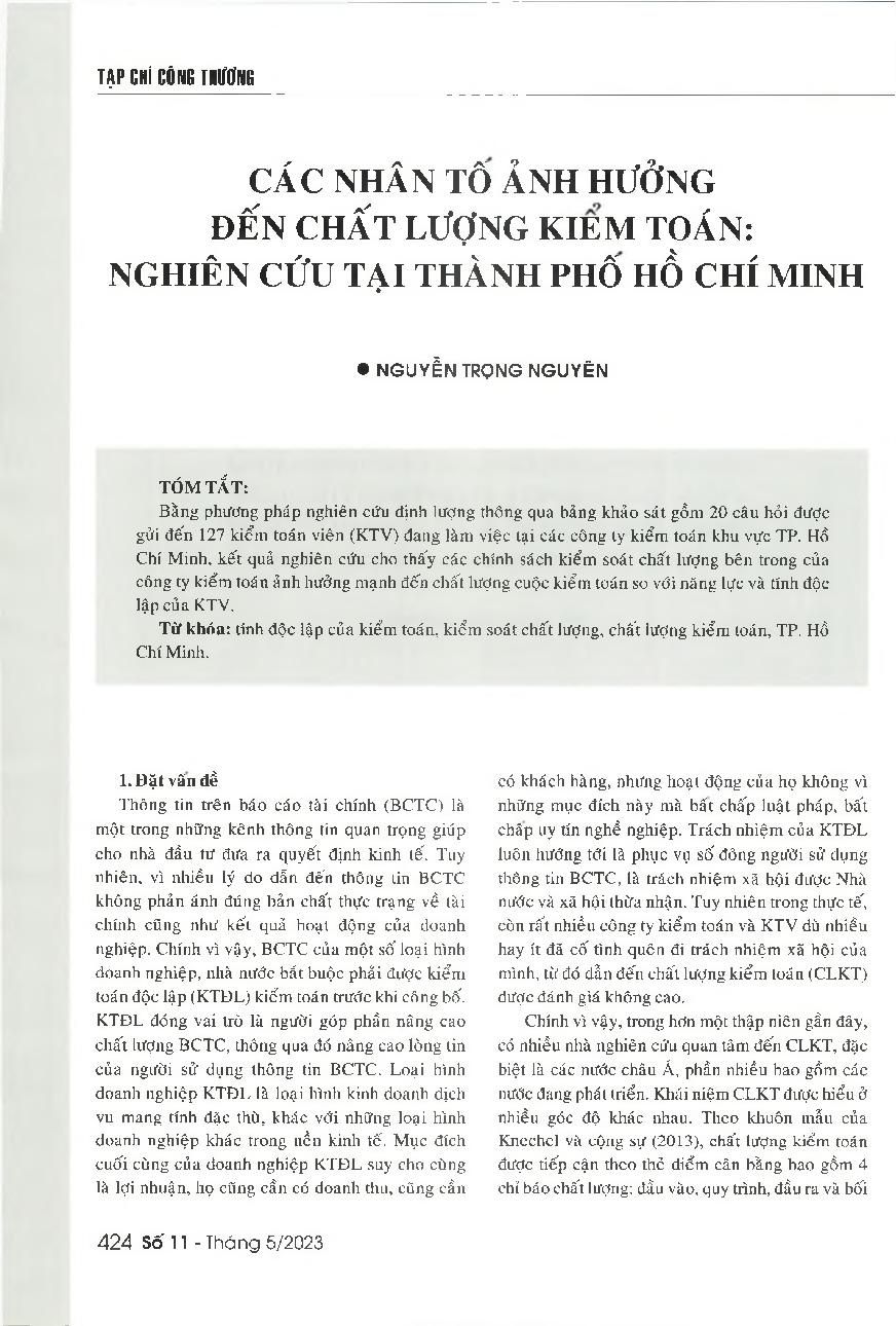 Các nhân tố ảnh hưởng đến chất lượng kiểm toán: Nghiên cứu tại TP. Hồ Chí Minh