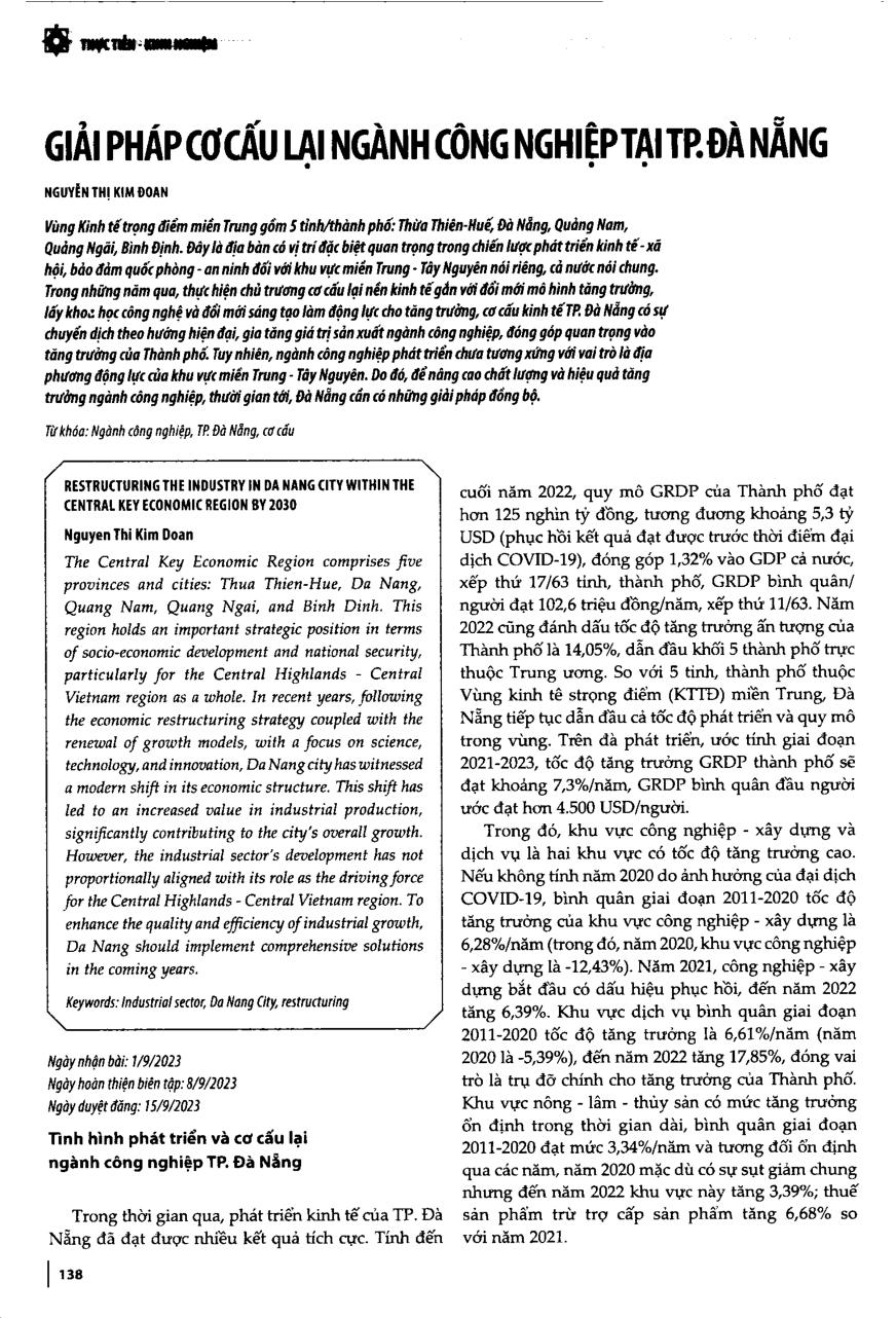 Giải pháp cơ cấu lại ngành công nghiệp tại TP. Đà Nẵng