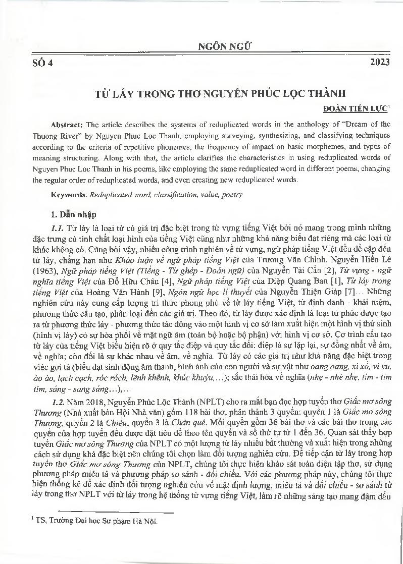 Từ láy trong thơ Nguyễn Phúc Lộc Thành = Words in the poem Nguyen Phuc Loc Thanh