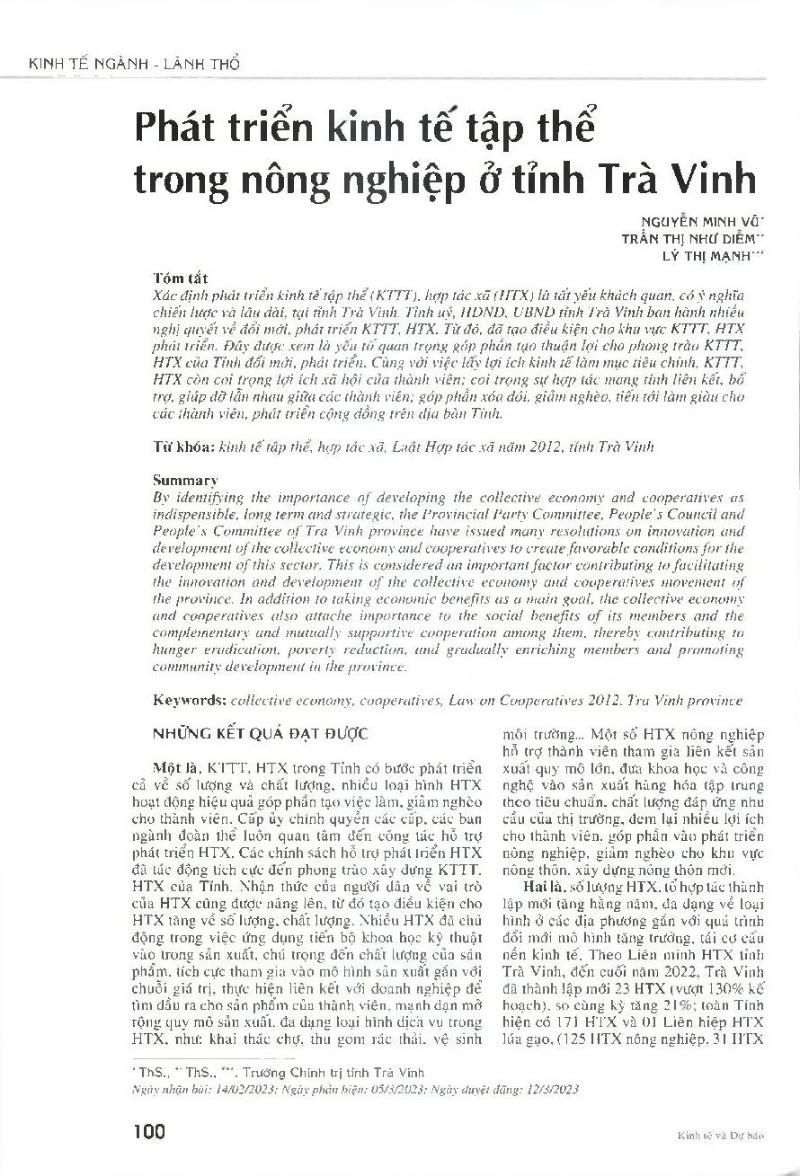 Phát triển kinh tế tập thể trong nông nghiệp ở tỉnh Trà Vinh