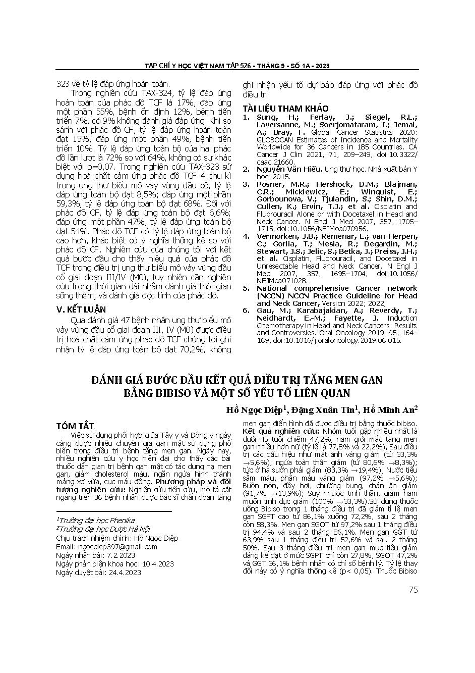 Đánh giá bước đầu kết quả điều trị tăng men gan bằng bibiso và một số yếu tố liên quan = Evaluation initial results of treatment elevated liver enzymes with Bibiso
