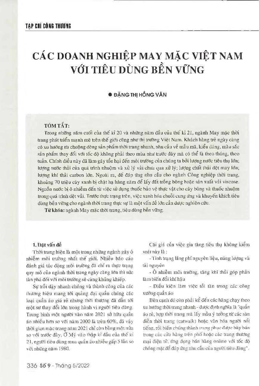 Các doanh nghiệp may mặc Việt Nam với tiêu dùng bền vững = Vietnamese garment enterprises and the sustainable consumption