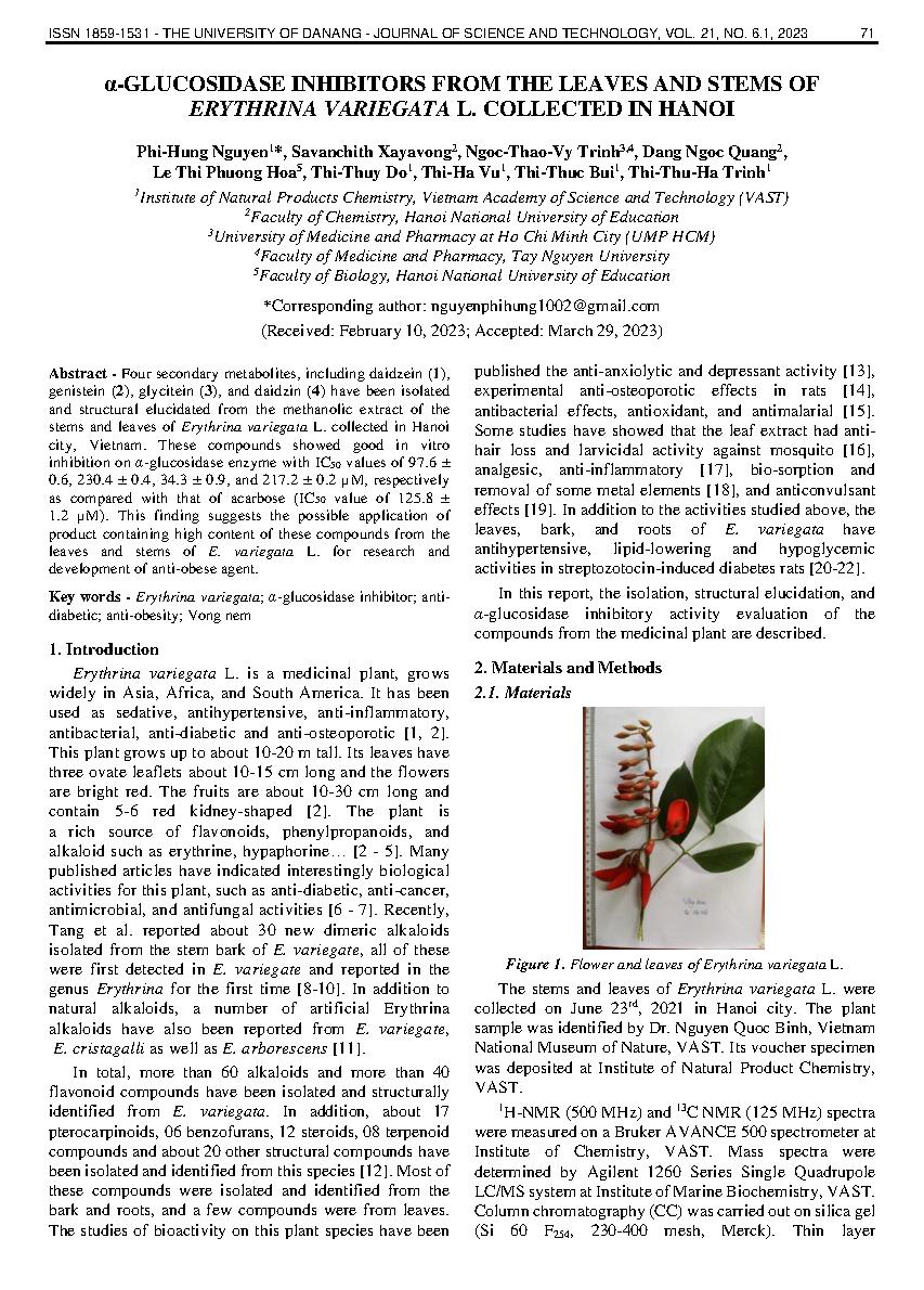 Chất ức chế α-Glucosidase từ lá và thân của erythrina variegata l. sưu tầm tại Hà nội = α-Glucosidase inhibitors from the leaves and stems of erythrina variegata l. collected in Hanoi