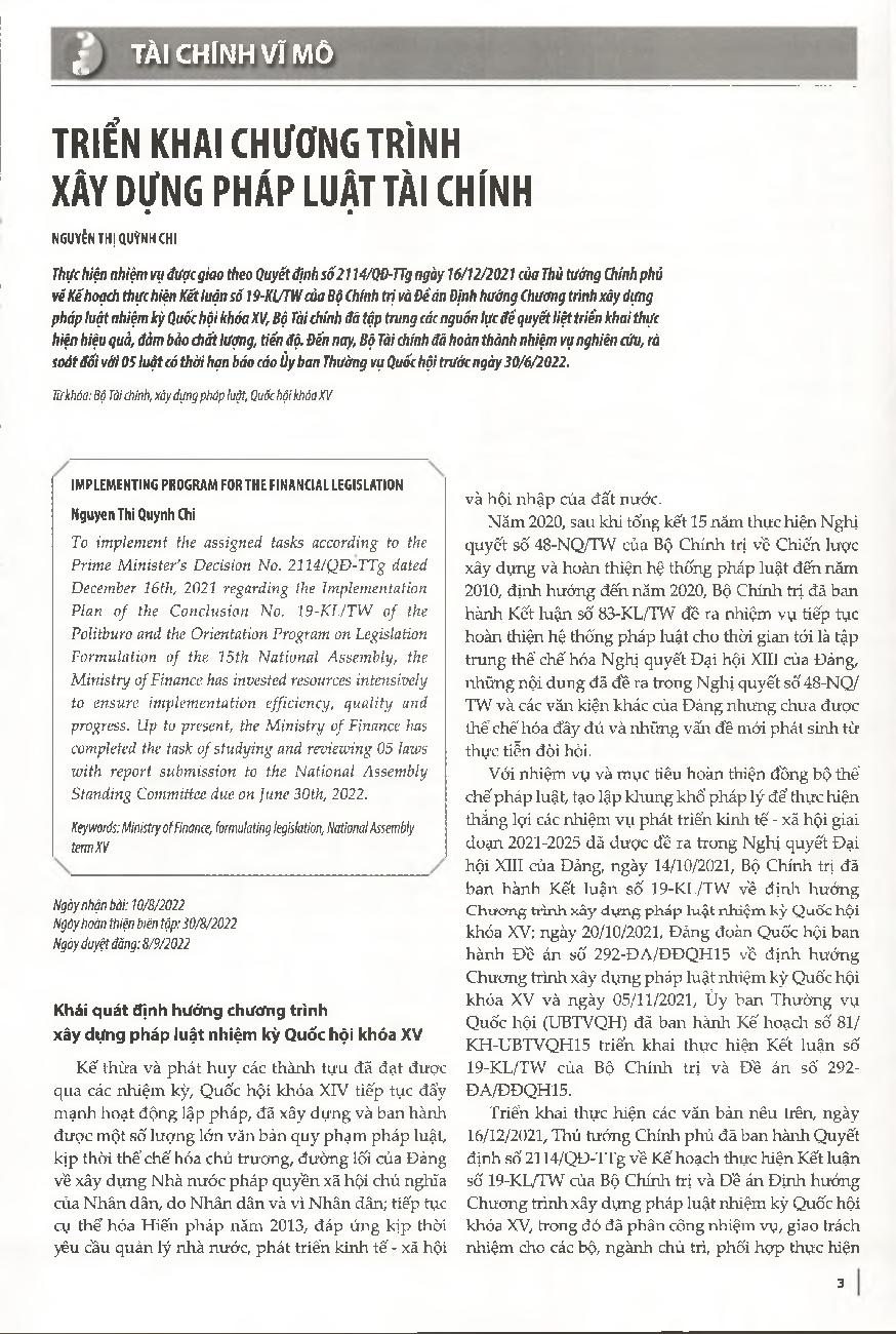 Triển khai chương trình xây dựng pháp luật tài chính = Implementing program for the financial legislation