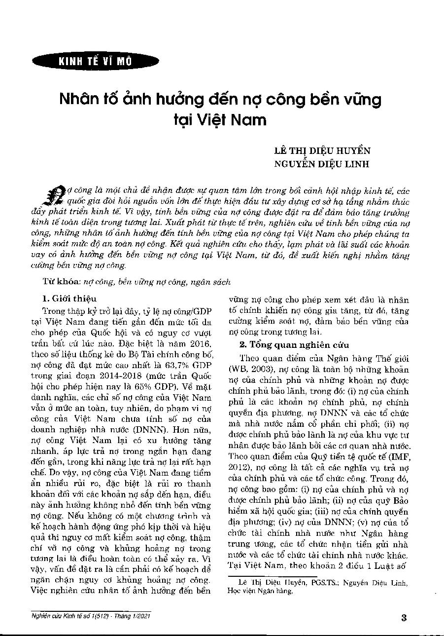 Nhân tố ảnh hưởng đến nợ công bền vững tại Việt Nam
