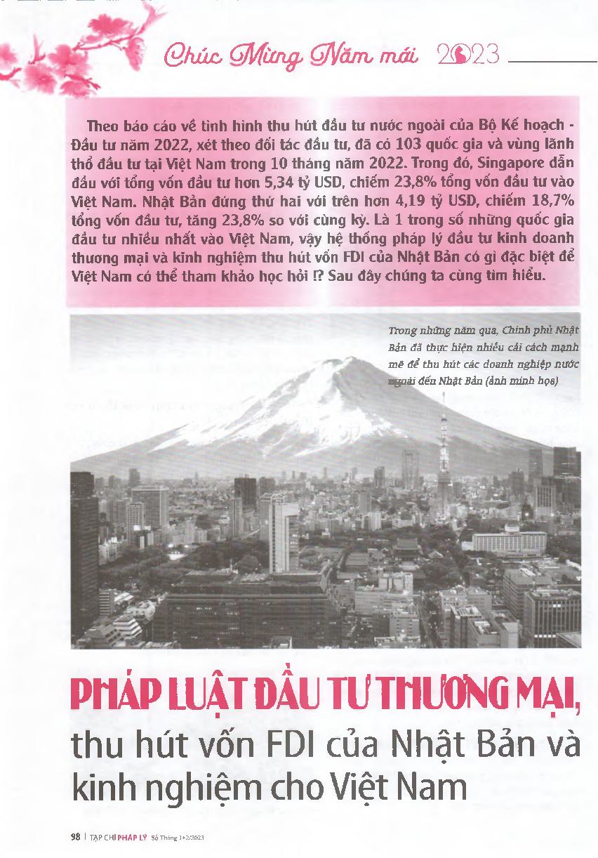 Pháp luật đầu tư thương mại, thu hút vốn FDI của Nhật Bản và kinh nghiệm cho Việt Nam
