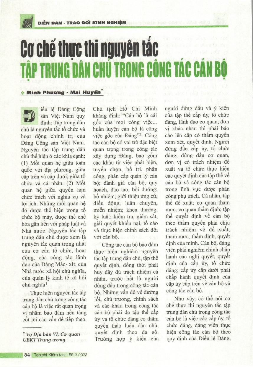 Cơ chế thực thi nguyên tắc tập trung dân chủ trong công tác cán bộ