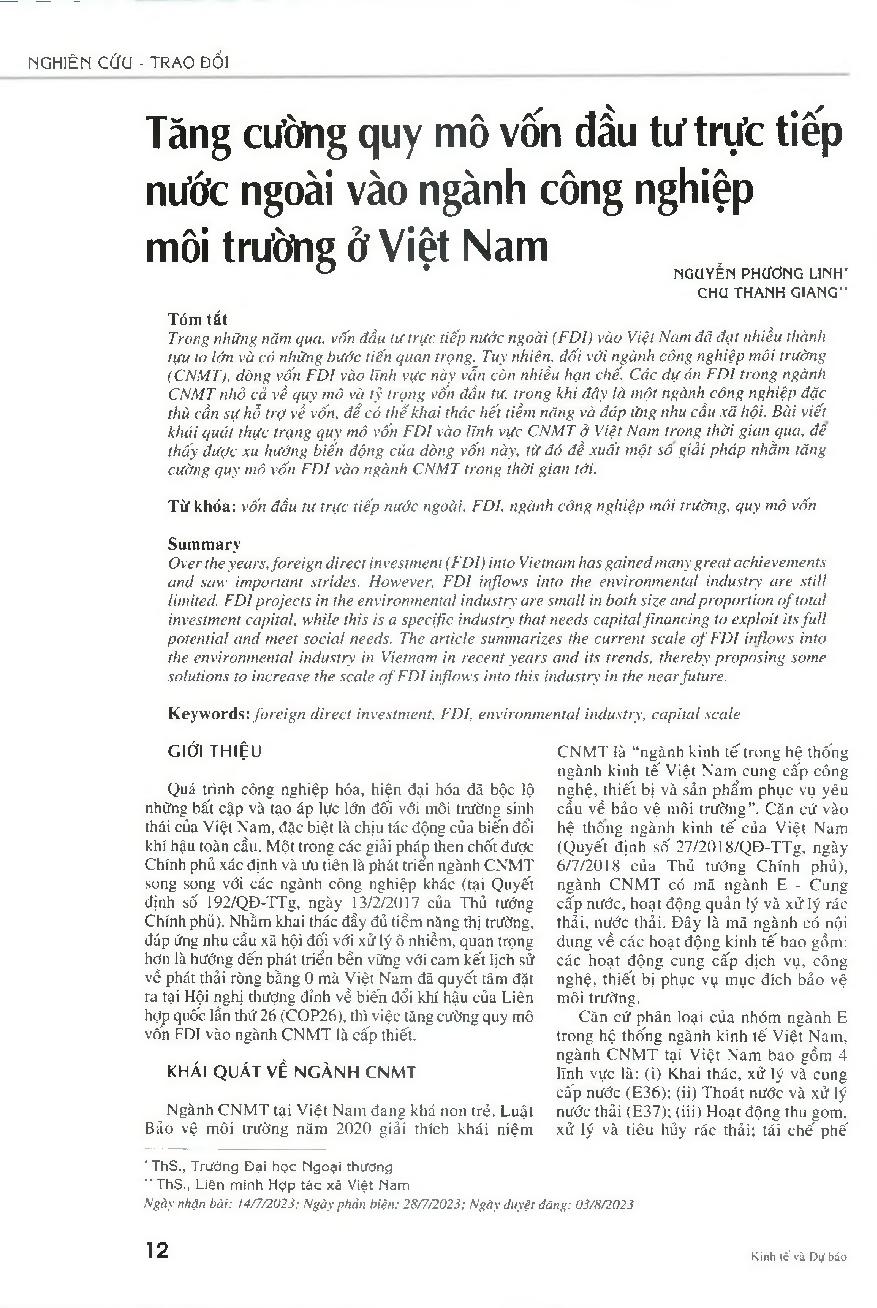 Tăng cường quy mô vốn đầu tư trực tiếp nước ngoài vào ngành công nghiệp môi trường ở Việt Nam