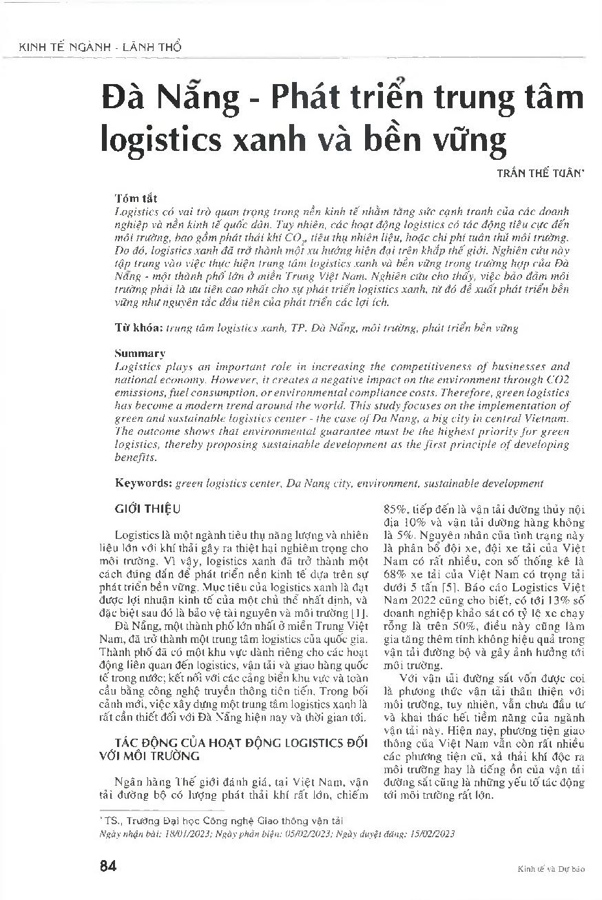 Đà Nẵng - Phát triển trung tâm logistics xanh và bền vững = Developing a green and sustainable logistics center in Da Nang