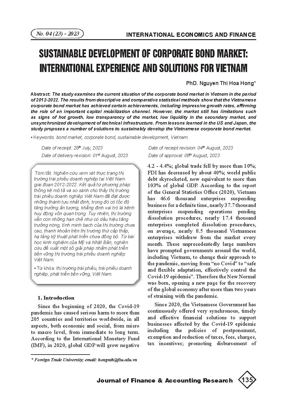 Phát triển bền vững thị trường trái phiếu doanh nghiệp: Kinh nghiệm quốc tế và giải pháp cho Việt Nam = Sustainable development of corporate bond market: International experience and solutions for Vietnam