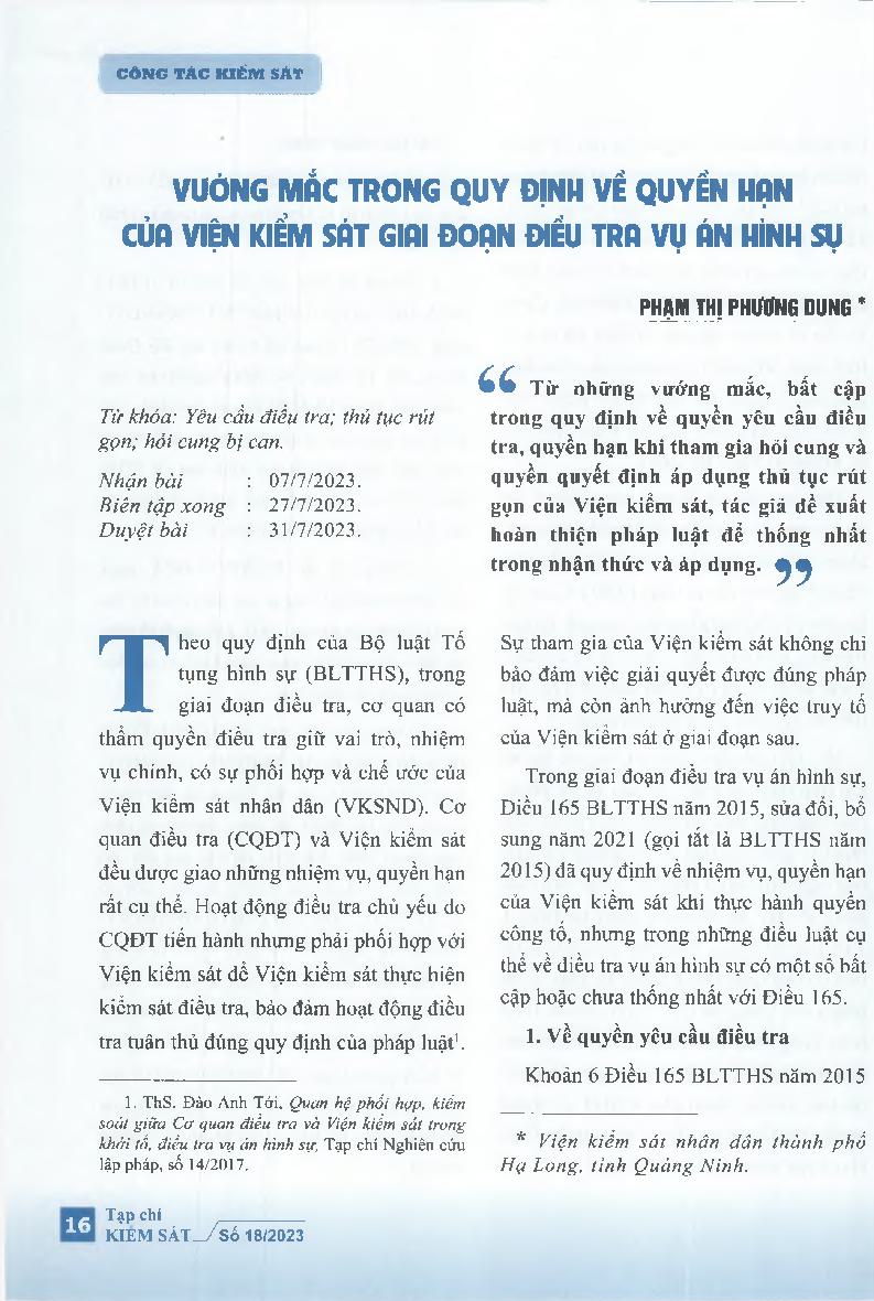 Vướng mắc trong quy định về quyền hạn của viện kiểm sát giai đoạn điều tra vụ án hình sự