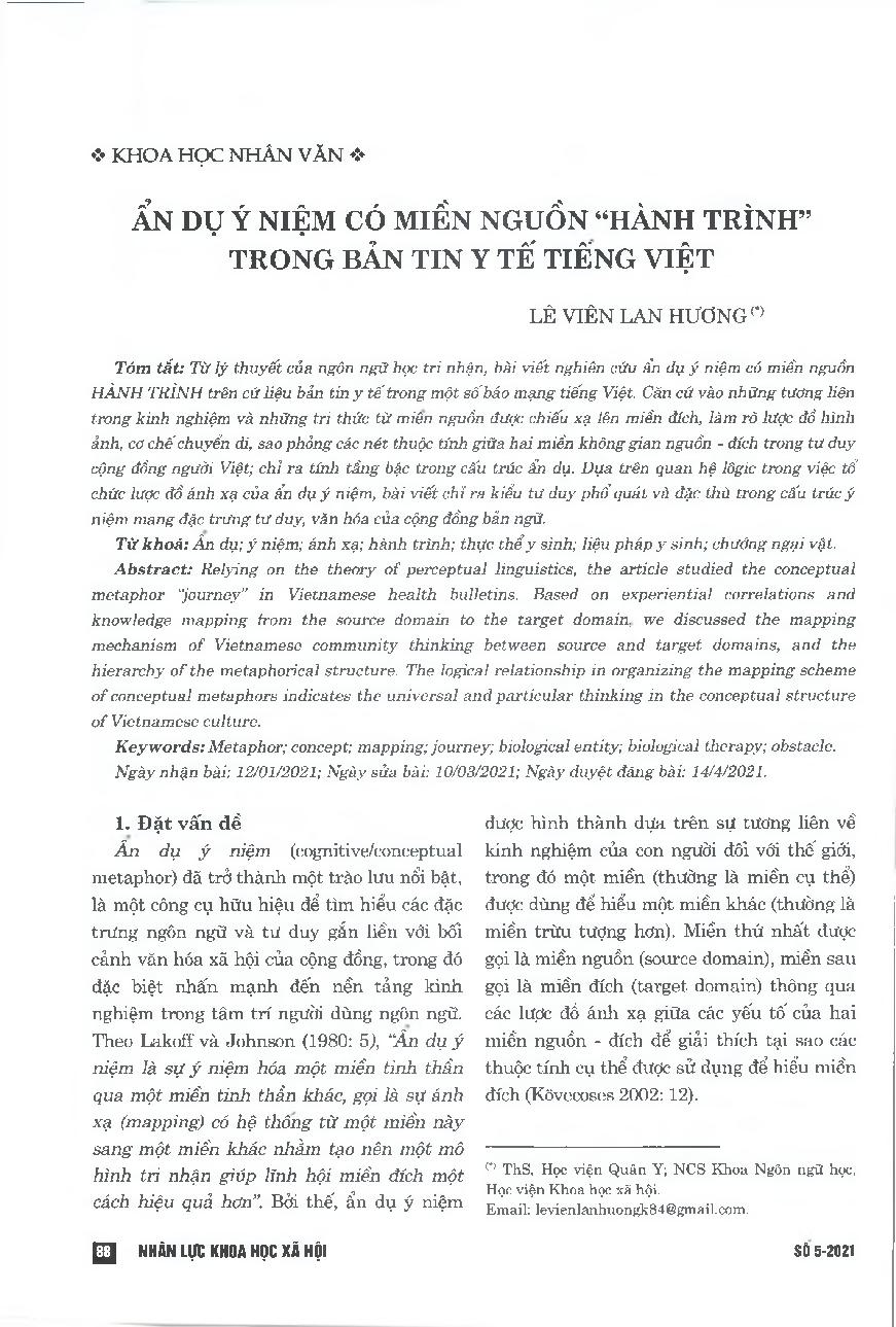 Ẩn dụ ý niệm có miền nguồn “HÀNH TRÌNH” trong bản tin y tế tiếng Việt = Conceptual metaphor with source domain "journey" in Vietnamese medical news